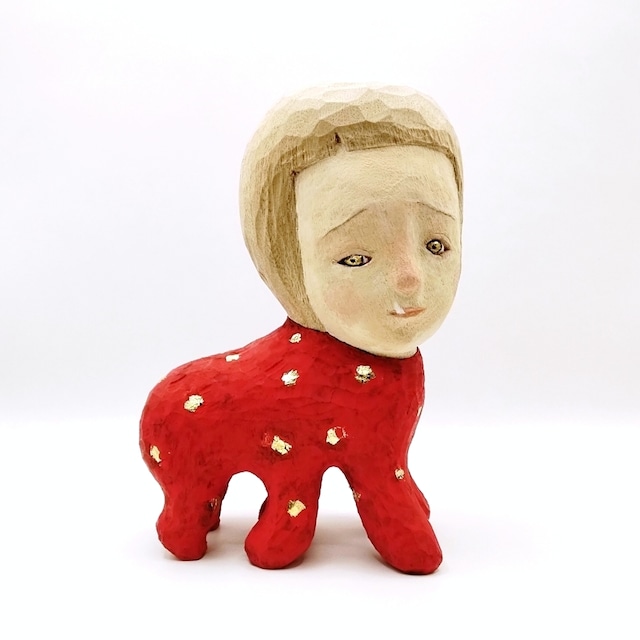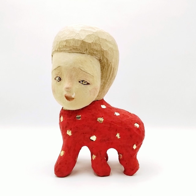 作家:丸尾 康弘 作品名:「リリ(あ)」 年代:2026年 技法:楠・彩色・金箔 サイズ:14.5×9×6.5cm サイン:有 附属品:無 備考:対作品のセット購入で割引有 ************************************************ 丸尾 康弘 Yasuhiro Maruo 熊本県生まれ。 彫り跡が大胆に残る木肌。 楠の、なんとも心地良い香り。 丸尾康弘が生み出す彫刻は、あたたかく、遊び心があり、それでいてどこかに憂いや影を帯びる。 「自然と人間の共生」をテーマに、人物や動物をモチーフにしながらも抽象的な精神性を感じる作品を制作をしている。 ************************************************ 苦しいことが多いであろう人生を歩む子どもたち。 ハイハイをする幼いリリは、そうした未来へと一歩を踏み出したばかりの彼らを表す普遍的・抽象的なイメージです。 丸尾康弘は、小さくか弱い彼らに授ける一種の「力」として、様々な異形の要素を取り入れてきました。 子どもたちを陰から支える人々の存在を四本の足に。 左右で大きさの異なる眼と口元の牙は、険しい形相ながらも私たちを救済へと導く「不動明王」から引用したもの。 さらに本作では、神社の狛犬・獅子や寺社の仁王像に見られる「阿吽(あ・うん)」の造形が加えられています。 口を開ける「阿形」と閉じる「吽形」の一対で、宇宙の始まりと終わり、物ごとの真理や森羅万象を示すとされ、聖域を守る番人としての役目を司る「阿吽」。 口元を開く「阿形」のリリには、好奇心旺盛で天真爛漫な、"動" のイメージが漂います。 国内外で高い注目を集める彫刻家による、アートコレクションに大変おすすめの作品です。 ************************************************ 《リリ(うん)》と対となる作品です。 《リリ(あ)》のみの単品販売をいたしますが、セットでのご購入の場合には1万円割引させていただきます。 《リリ(あ)》・《リリ(うん)》2点を合わせたご購入画面にて、クーポンコード【 lili_set 】をご入力いただくと、割引適用となります。 なお、ご購入は先着順となります。 先に単品での売約が決まっている場合には、この限りではありません旨、予めご了承くださいませ。 ************************************************ 撮影の都合上、実際の色味とは若干異なっている可能性があります点、ご了承ください。 ご利用中のディスプレイ端末によっても多少の差異が生じるかと思います。 ご不明な点がありましたらお気軽にお問い合わせください。 ************************************************ International shipping is available. Please feel free to contact us via the inquiry form.