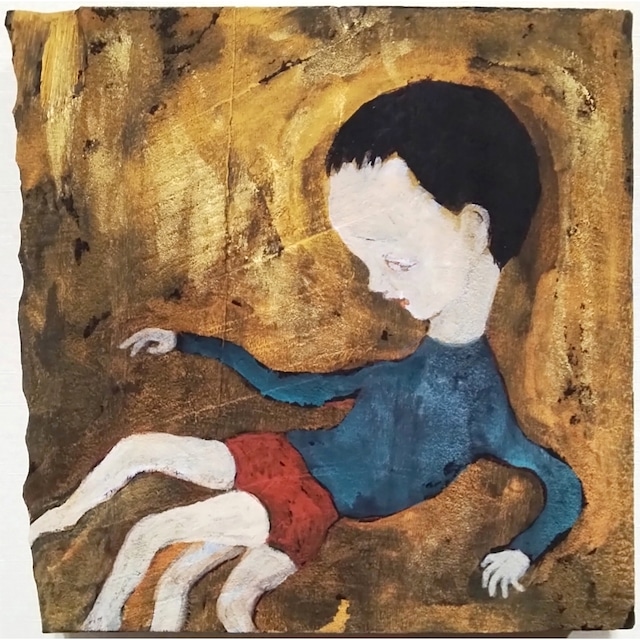 作家:丸尾 康弘 作品名:「泳ぐ人」 年代:2024年 技法:楠にアクリルガッシュ イメージサイズ:22.5×23×4cm サイン:有 附属品:ドローイング付専用箱 ************************************************ 丸尾 康弘 Yasuhiro Maruo 熊本県生まれ。 彫り跡が大胆に残る木肌。 楠の、なんとも心地良い香り。 丸尾康弘が生み出す彫刻は、あたたかく、遊び心があり、それでいてどこかに憂いや影を帯びる。 「自然と人間の共生」をテーマに、人物や動物をモチーフにしながらも抽象的な精神性を感じる作品を制作をしている。 ************************************************ 懸命に手足を動かし泳ぐ人。 前へ進もうともがけばもがくほど、後ろへ引きずられたり沈んでしまったり。 自然災害や思い通りにならないことの多い現代社会を彷徨う私たちの有り様が、少年の姿に託されています。 本作は、楠の板にアクリルガッシュで描いた作品です。 厚みのある板の側面にも彩色が施され、立体と平面両方の要素を楽しめるところが魅力。 削げや亀裂といった木材の表情をそのまま活かした表現には、抗えない自然の力を受け入れ、共に生きていくという作家の創作テーマが映し出されています。 裏面は、縁を残して溝をくり抜いた仕上げとなっております。 棚に立て掛けたり、ピンやフックに縁部分を引っ掛けて壁面展示することが可能です。 額装ご希望の場合には、お気軽にご相談ください。 作家によるドローイングが描かれた専用箱が附属します。 作品と併せてお楽しみくださいませ。 ************************************************ 撮影の都合上、実際の色味とは若干異なっている可能性があります点、ご了承ください。 ご利用中のディスプレイ端末によっても多少の差異が生じるかと思います。 ご不明な点がありましたらお気軽にお問い合わせください。 ************************************************ International shipping is available. Please feel free to contact us via the inquiry form.