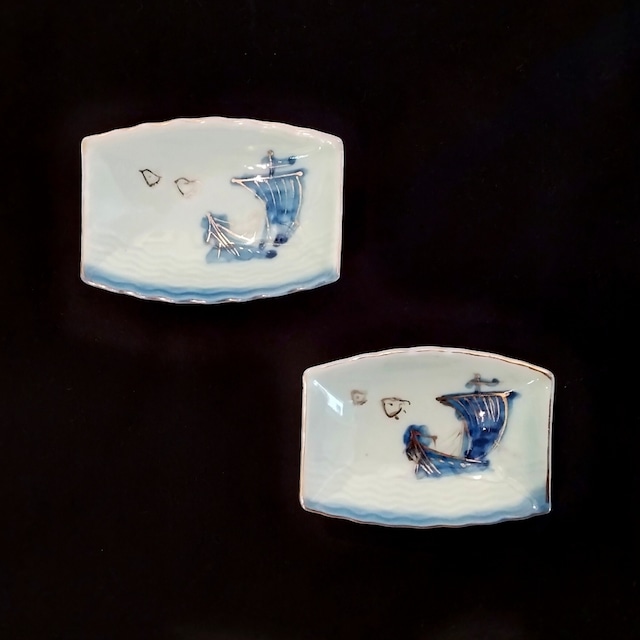 国:日本 年代:大正~昭和 素材:セラミック サイズ:5.9×8.1×2.5cm 附属品:無 備考:1点ずつの単品販売となります ************************************************ 大正から昭和にかけて作られた、千鳥宝船文の豆皿です。 夫婦円満や家内安全、さらには勝運祈願や目標達成を表すとされる千鳥。 豊穣や開運、子孫繁栄の意味を持つ宝船。 ふたつの吉祥文を組み合わせた、縁起の良い絵柄です。 染付の藍色と華やかな金彩の対比が美しく、下方にはうっすらと波模様が刻まれたこだわりのデザインとなっております。 お醤油皿、お漬物やおつまみのなどの盛皿に。 いくつあっても困らない、日々の食卓に味わいを添えてくれるアイテムです。 レトロなアクセサリートレイとしてもご活用いただけると思います。 気になるダメージのない未使用の美品ですが、年代物相応の小傷やスレ等の経年変化がございます点、予めご理解くださいませ。 こちらは2点入荷しており、1点ずつ単品での販売をいたします。 絵付の表情やコンディションには個体差がありますが、お買い上げいただいた順番に当店で割り当てをさせていただきます。 ************************************************ 撮影の都合上、実際の色味とは若干異なっている可能性があります点、ご了承ください。 ご利用中のディスプレイ端末によっても多少の差異が生じるかと思います。 ご不明な点がありましたらお気軽にお問い合わせください。 ************************************************ International shipping is available. Please feel free to contact us via the inquiry form.