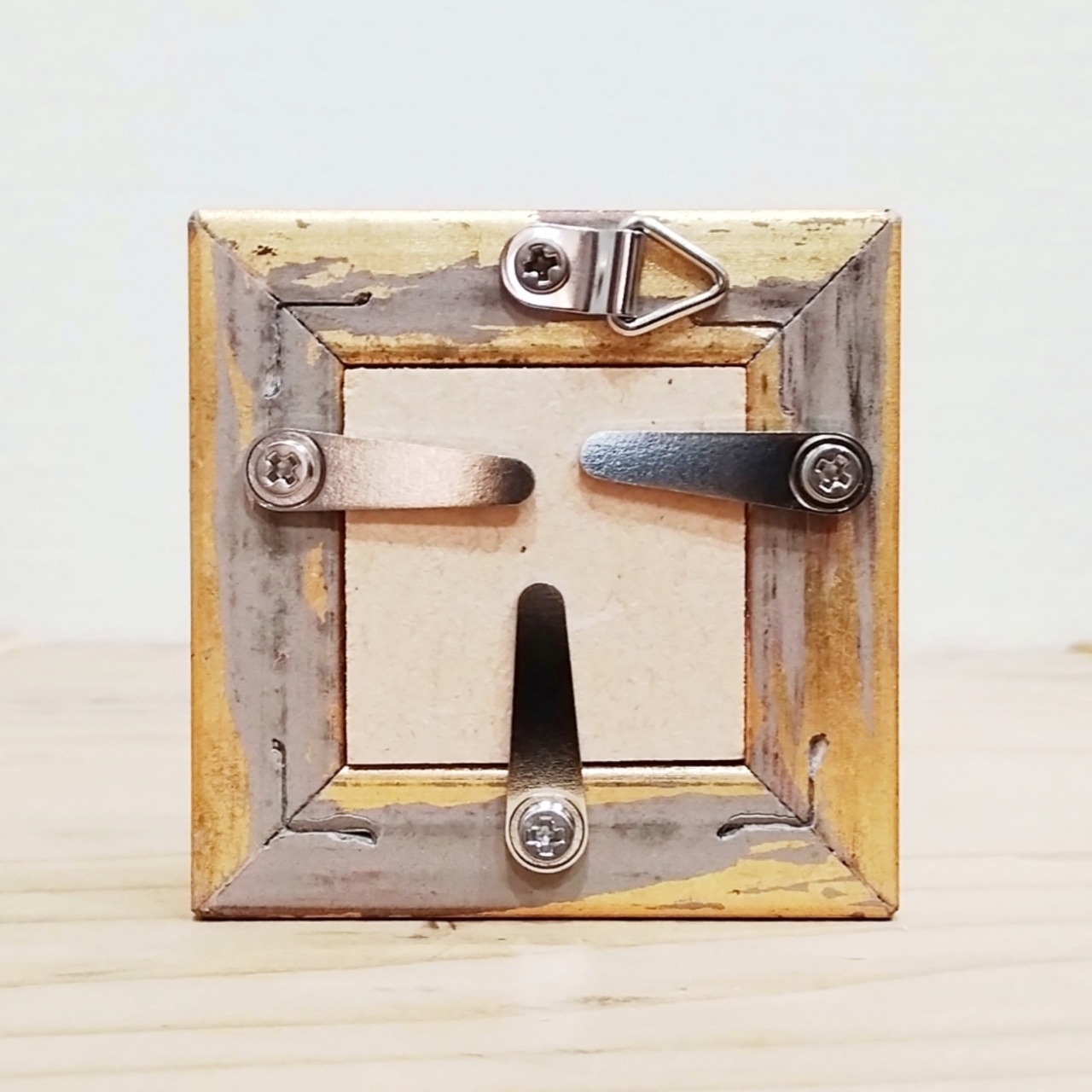 華麗な装飾模様のあるゴールドのフレームは、大きな額を作る際の端材を使って作られた「ミニ額」です。