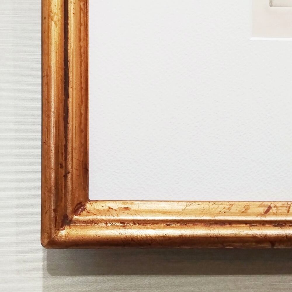 金箔を使用したフレームのため、強く擦ったり鋭利なもので引っ掛けてしまうと傷が付きやすくなっております。