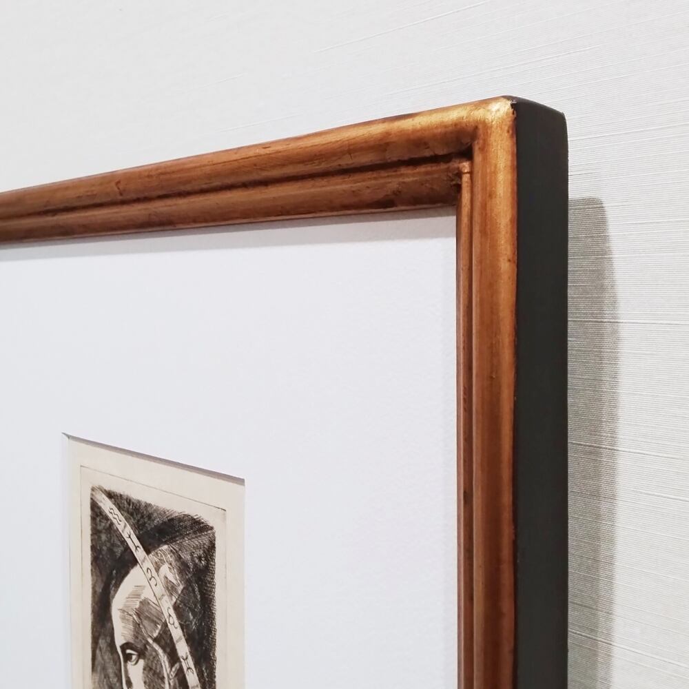 表面がゴールド、側面が黒の上質な木製額を合わせました。