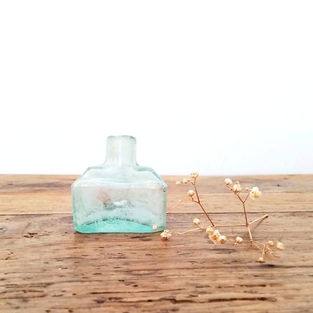 ヴィクトリア朝時代の当時、ペン先につけるインクを入れる容器は現代とは異なりガラス製で、グリーンから水色にかけての淡いカラーが特徴です。