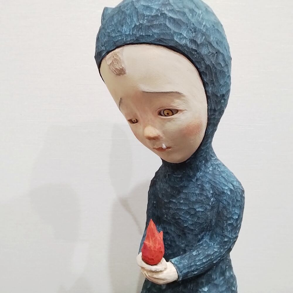丸尾康弘が生み出す彫刻は、あたたかく、遊び心があり、それでいてどこかに憂いや影を帯びる。