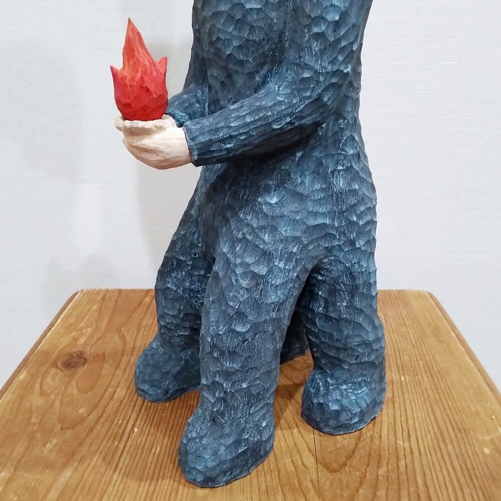 小さな炎が消えてしまわないようにそっと手で包み、四本の足で慎重に前へと進もうとしています。
