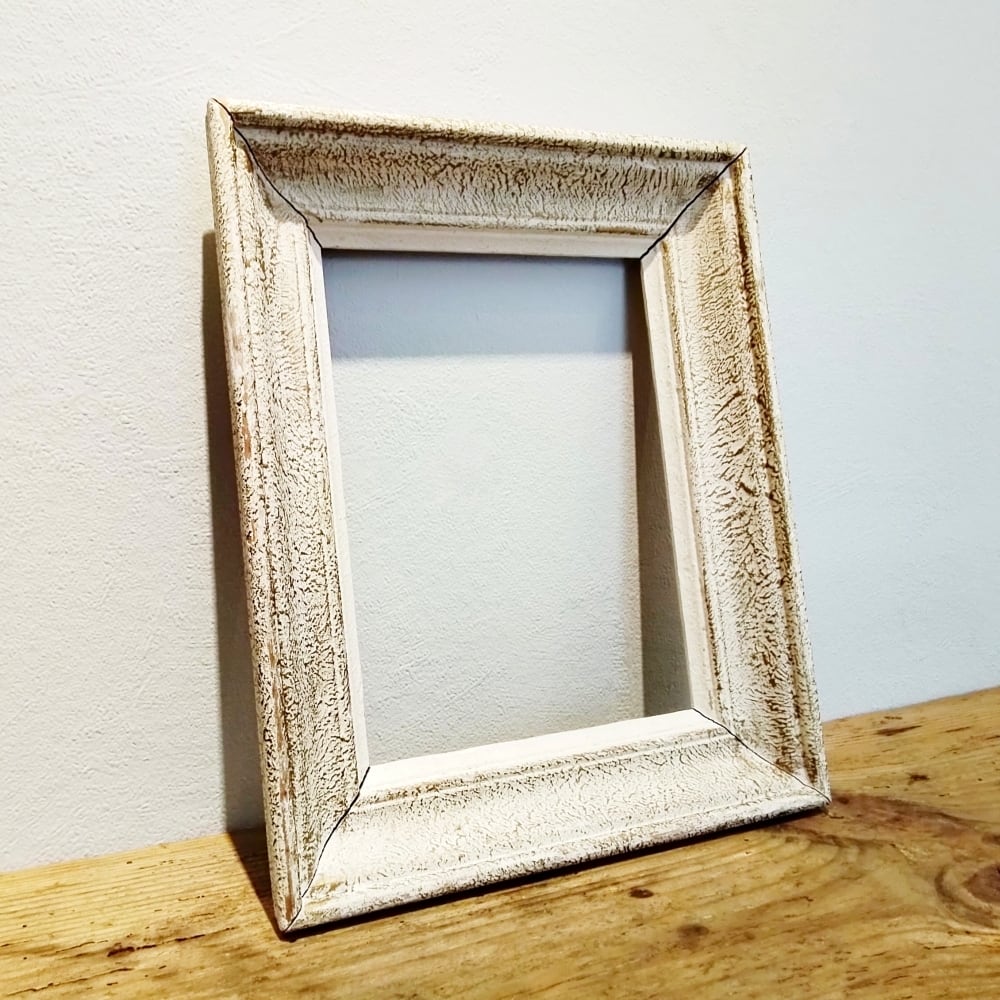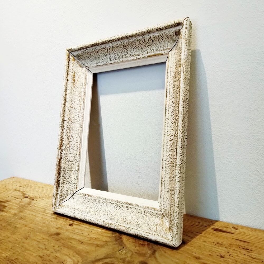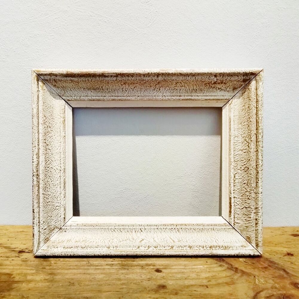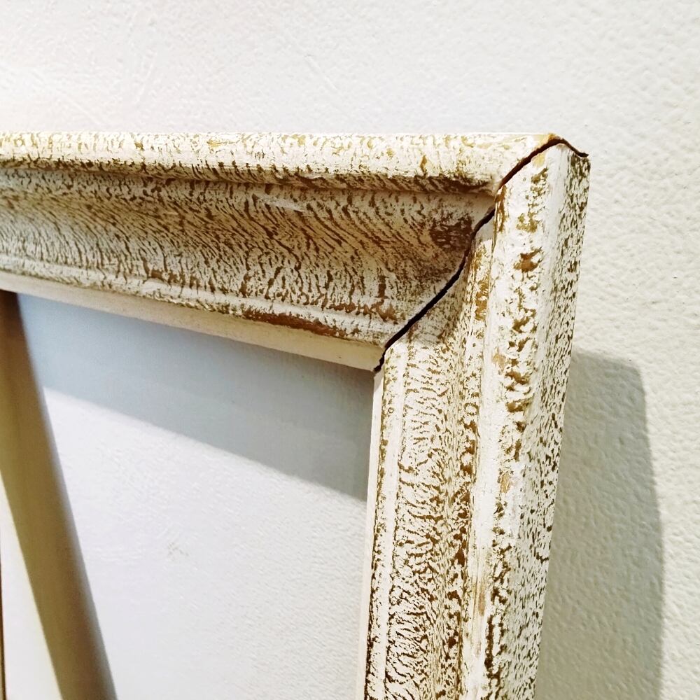 内流れの木枠に施されたくすみのあるホワイトペイント。