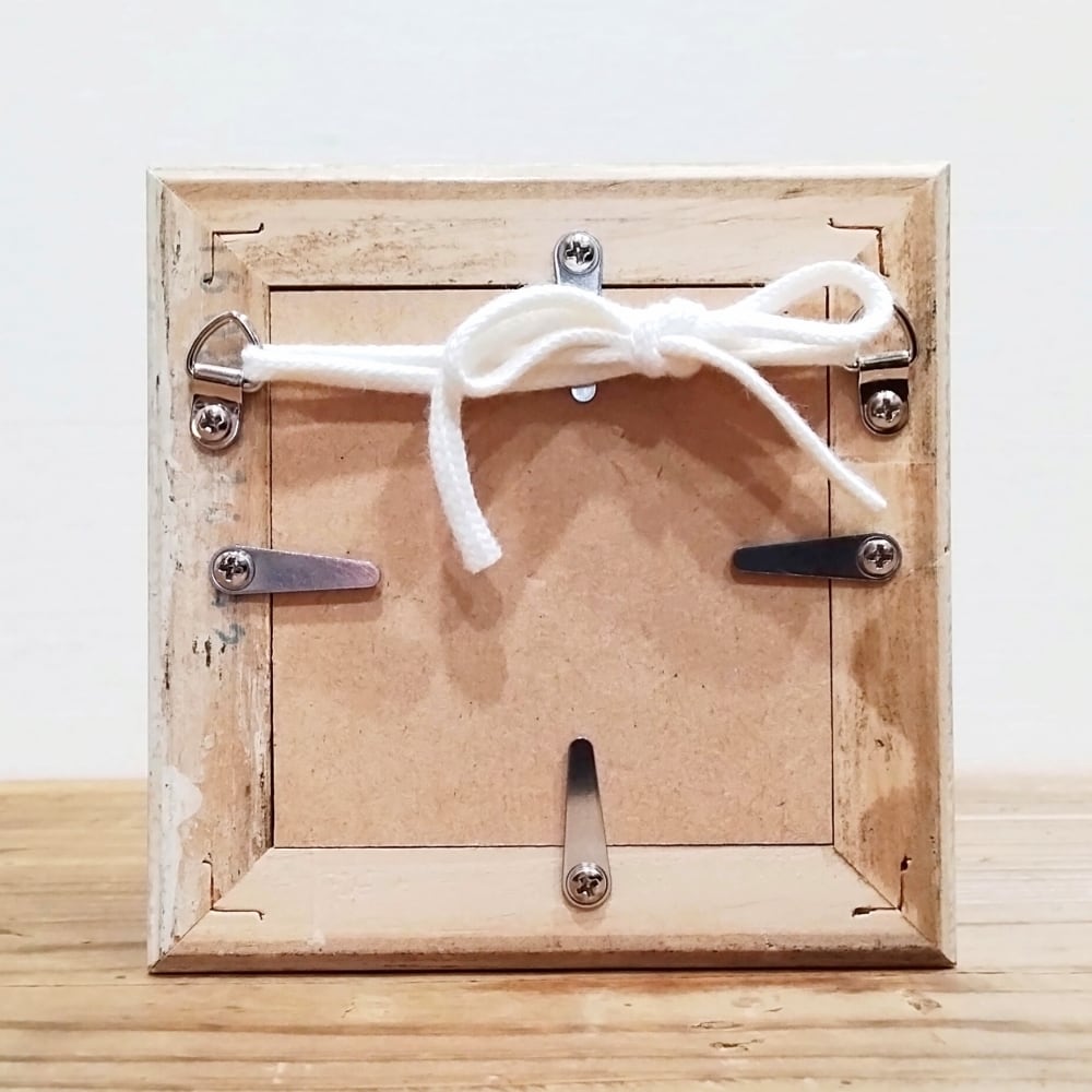 壁掛けが基本ですが、厚みがあるのでそのまま自立させて展示することもできます。