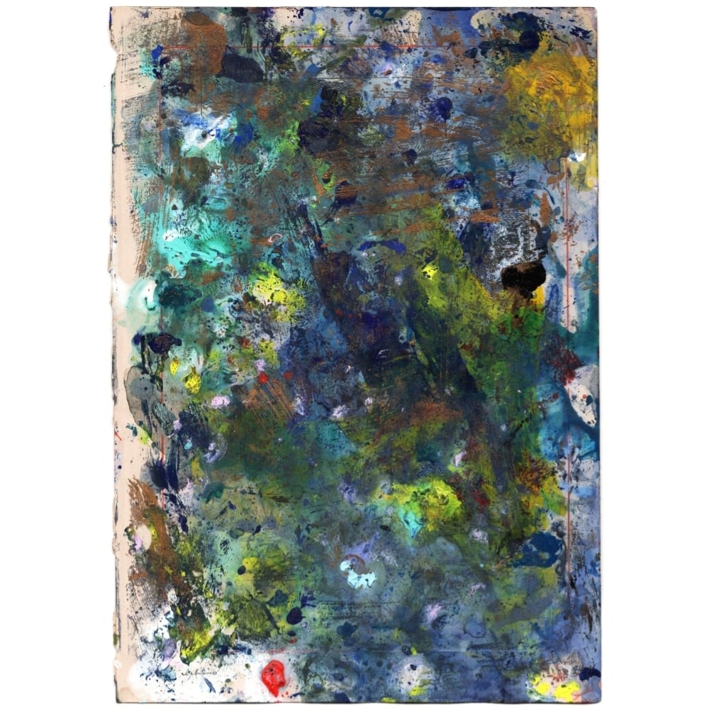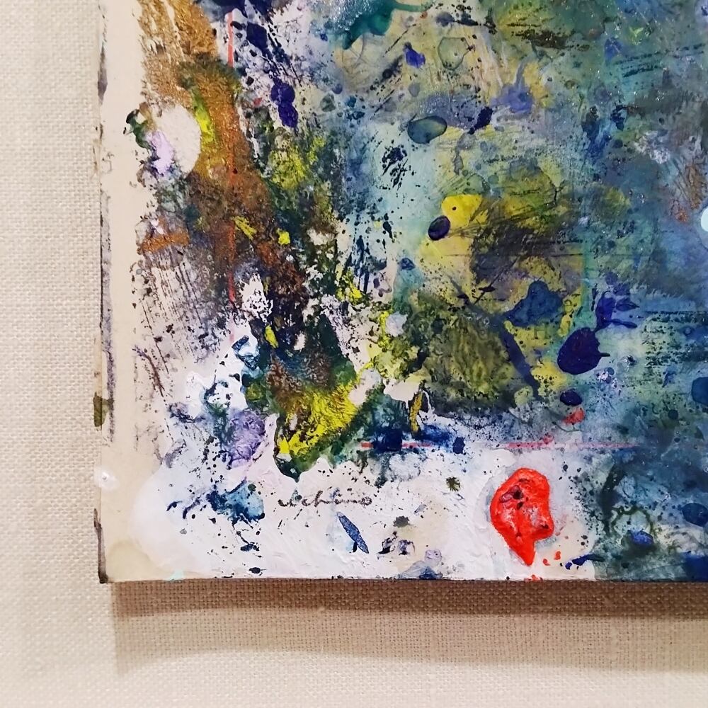 キラキラと光を放つニュアンスと、水分をたっぷりと含んだ滲みの表情のコントラストが美しい、幻想的な作品です。