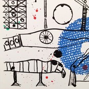 それぞれのフォルムとダイナミックな原色が戯れるかのごとく呼応し合う、生き生きとした絵柄です。