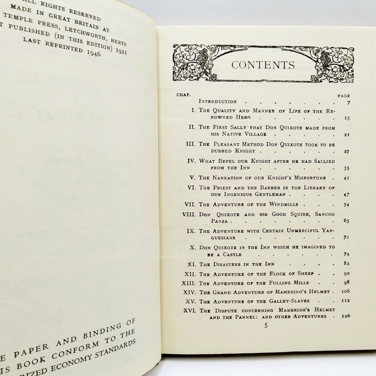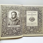 扉には、著者セルバンテスのモノクロ肖像が装飾的なデザインと共に描かれています。