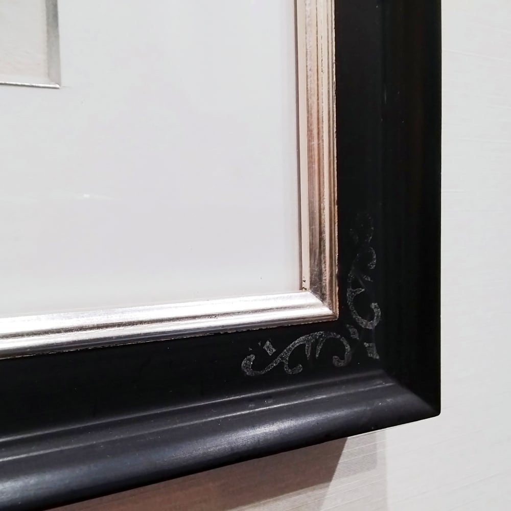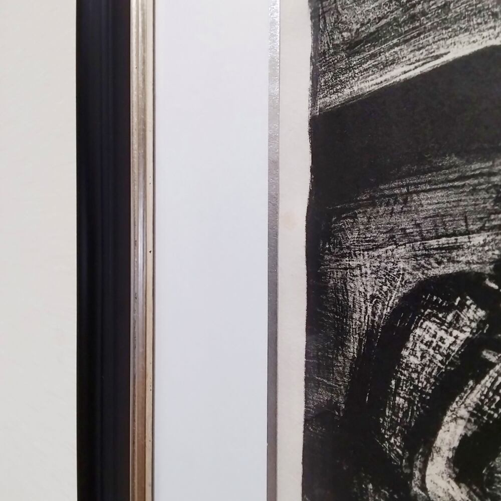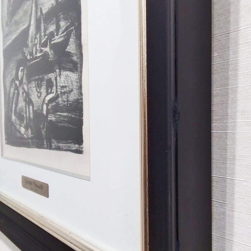 面銀加工のある幅3.5cm程のブラックの額に、ルオーのネームプレートが合わせてあります。