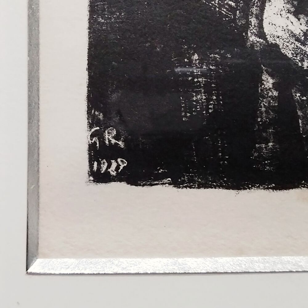 画面左下には、ルオーの版上サインと原版の制作年の記載がございます。