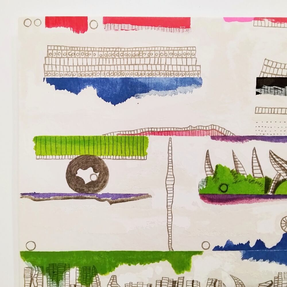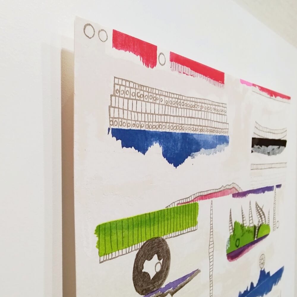 色と色の間に生まれた偶発的な空間を埋める、幾何学的なフォルム。