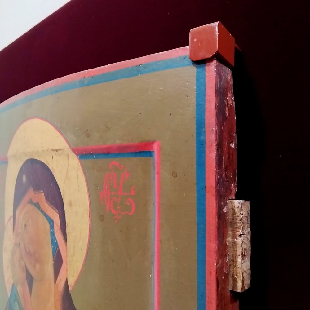 聖母マリアに頬を寄せる幼子イエスの姿は、正教会に伝わる「エレウサ型(“憐み”の意味)」と呼ばれる伝統的な図像です。