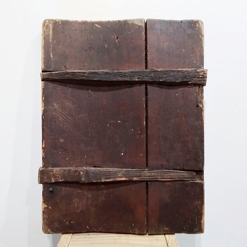 縦方向に大きく割れが生じていますが、制作当初から2枚の板を繋げていた可能性もございます。