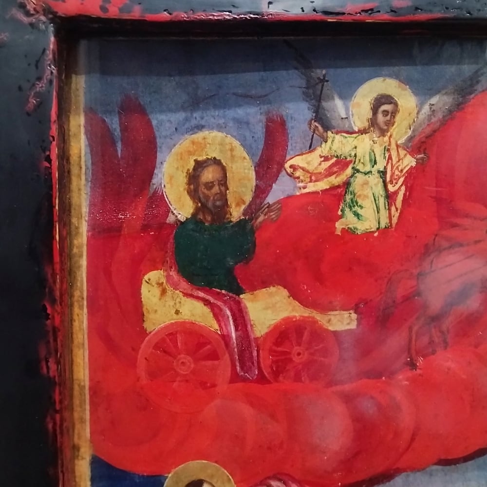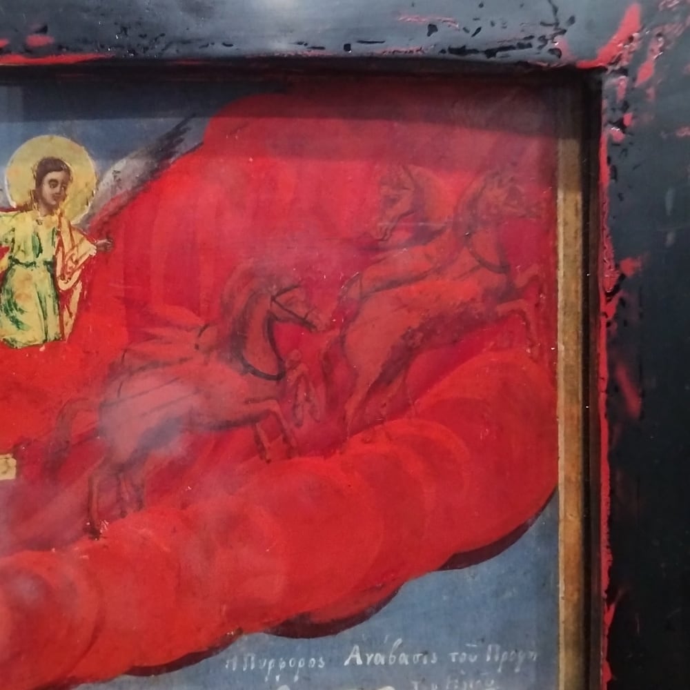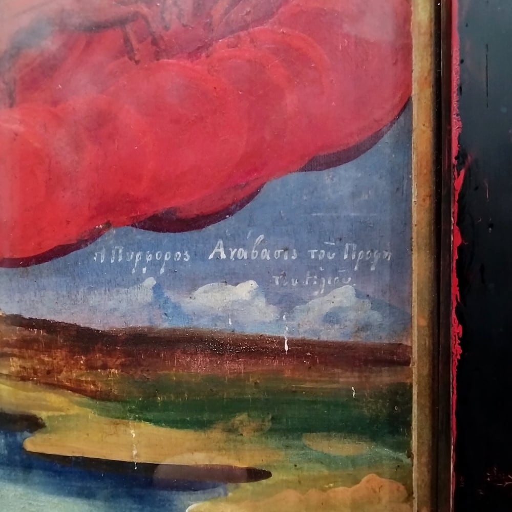 中央右手に書かれた文字は、「預言者エリヤの昇天」を意味するギリシャ語です。