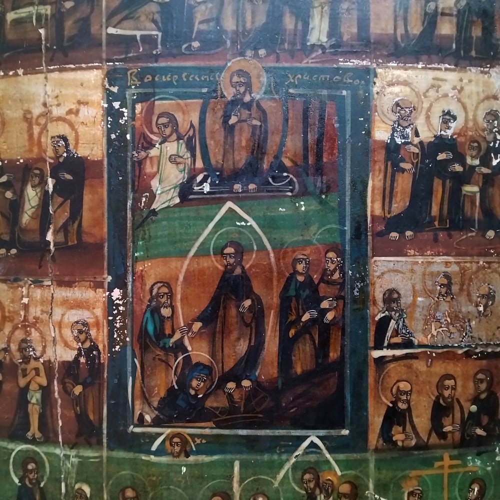 中央には「キリストの復活」と「キリストの黄泉降り」を上下に組み合わせた「復活大祭」、その周囲を取り囲むのは正教会が重要視する祭日を集めた「十二大祭」です。