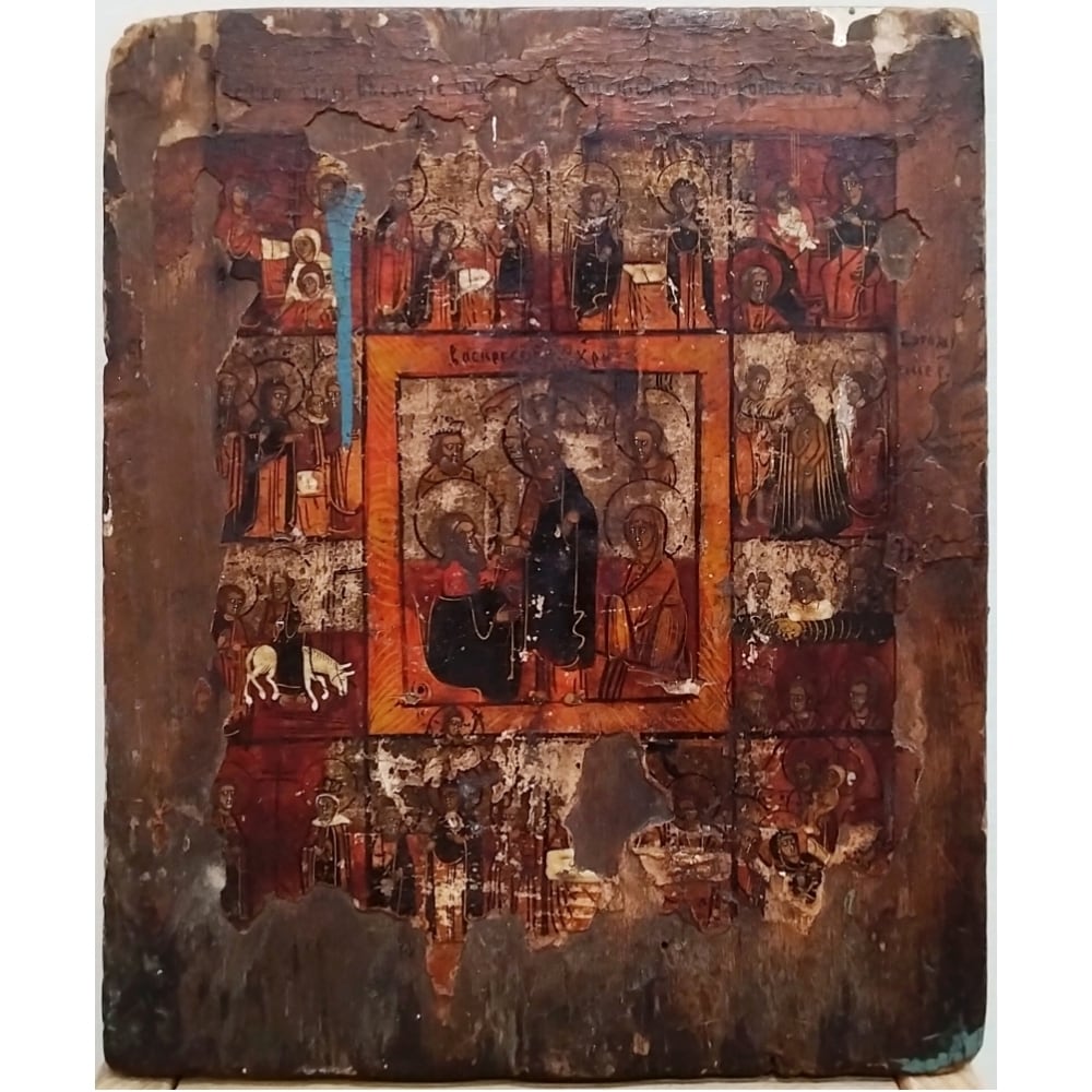 それぞれの事跡を独立して図像化したものが一般的ですが、このように一枚の板に主要な祭日を網羅する作例も多く見られ、正教会における礼拝行事で好んで用いられました。
