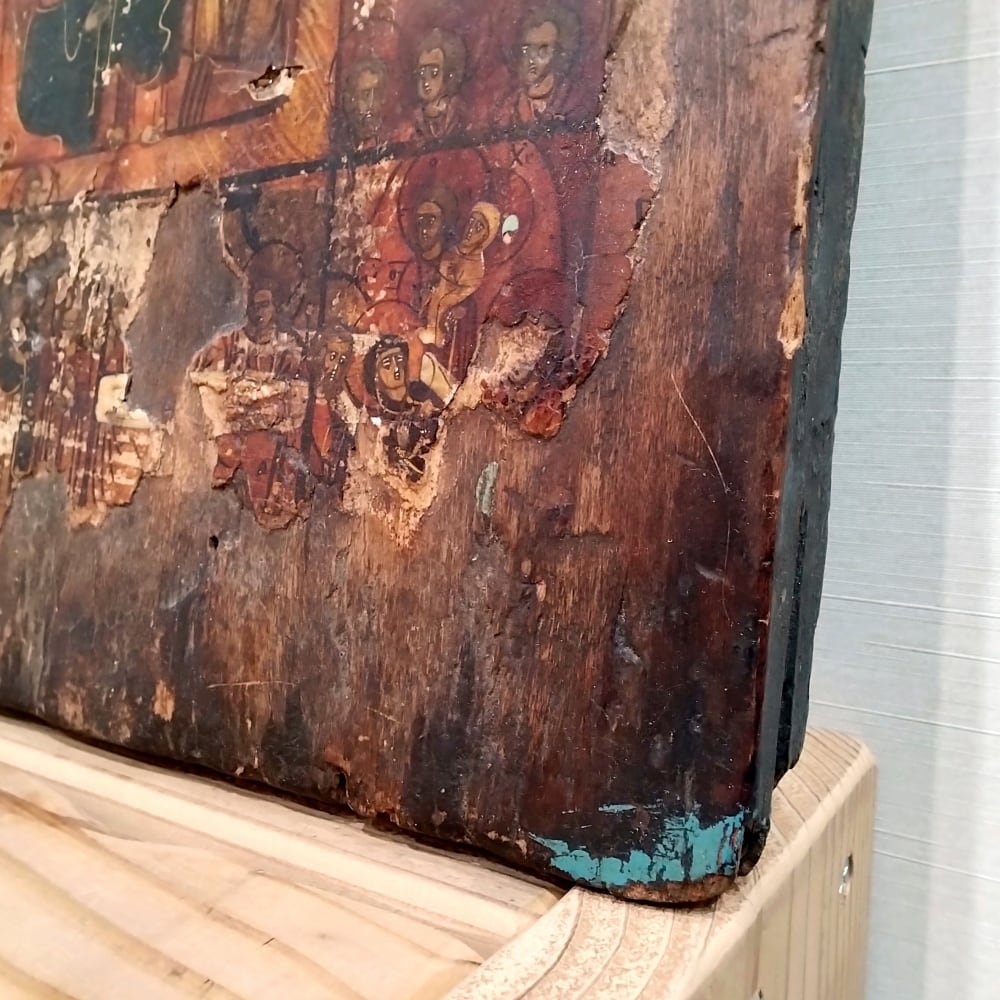 そして、このイコンの印象を方向付ける大きな要素は、激しい残欠性でしょう。