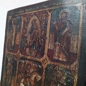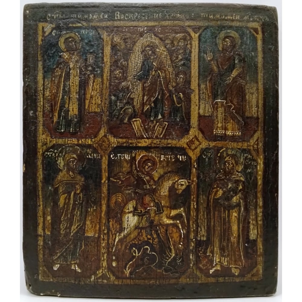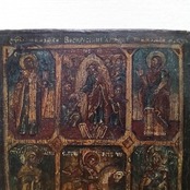 六人の聖人たちを枡目状の画面に配した小型のイコン。