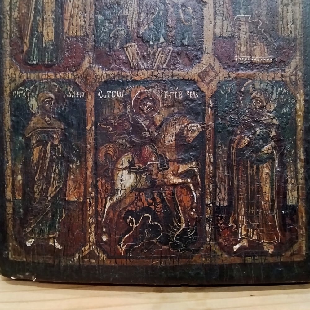 キリストや聖母マリア、あるいは主要な聖人たちの単身や列伝を描いたイコンと比べ、こうした複数の聖人の集合した図像は歴史的にも比較的表現の自由度が高かったようです。