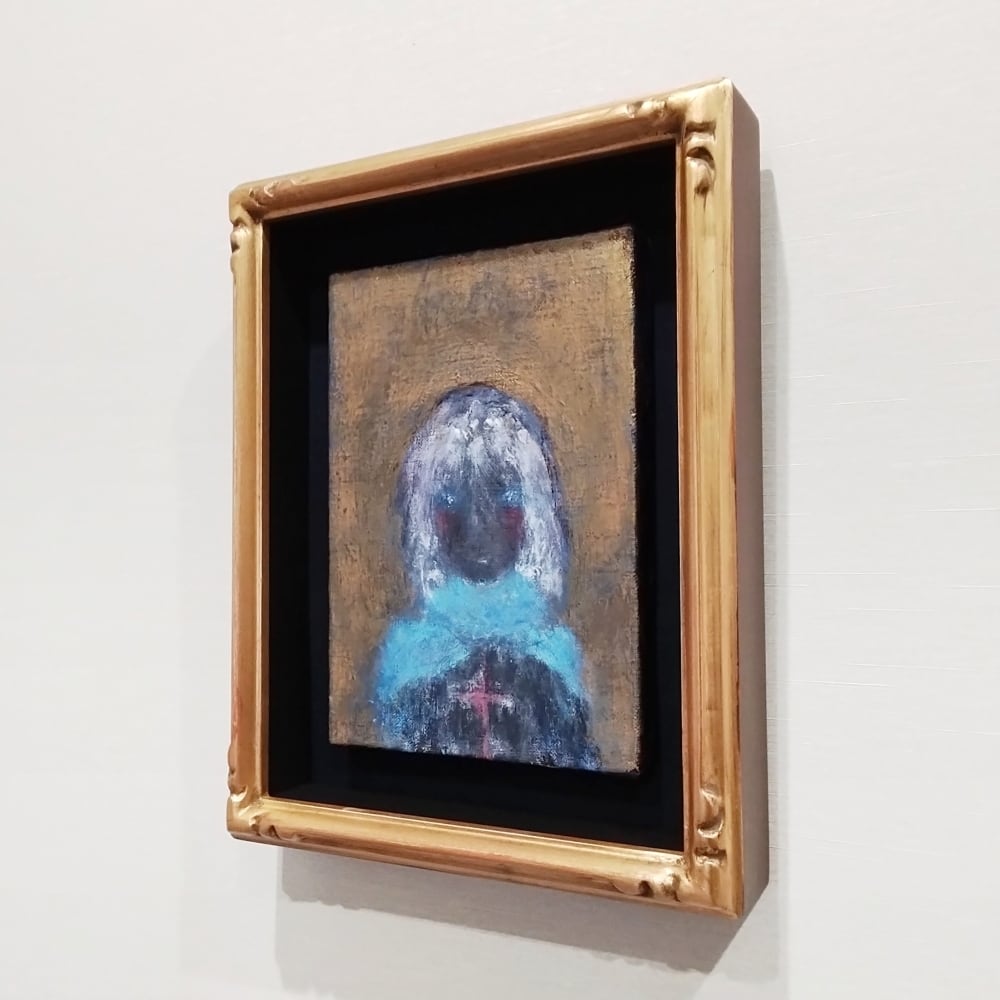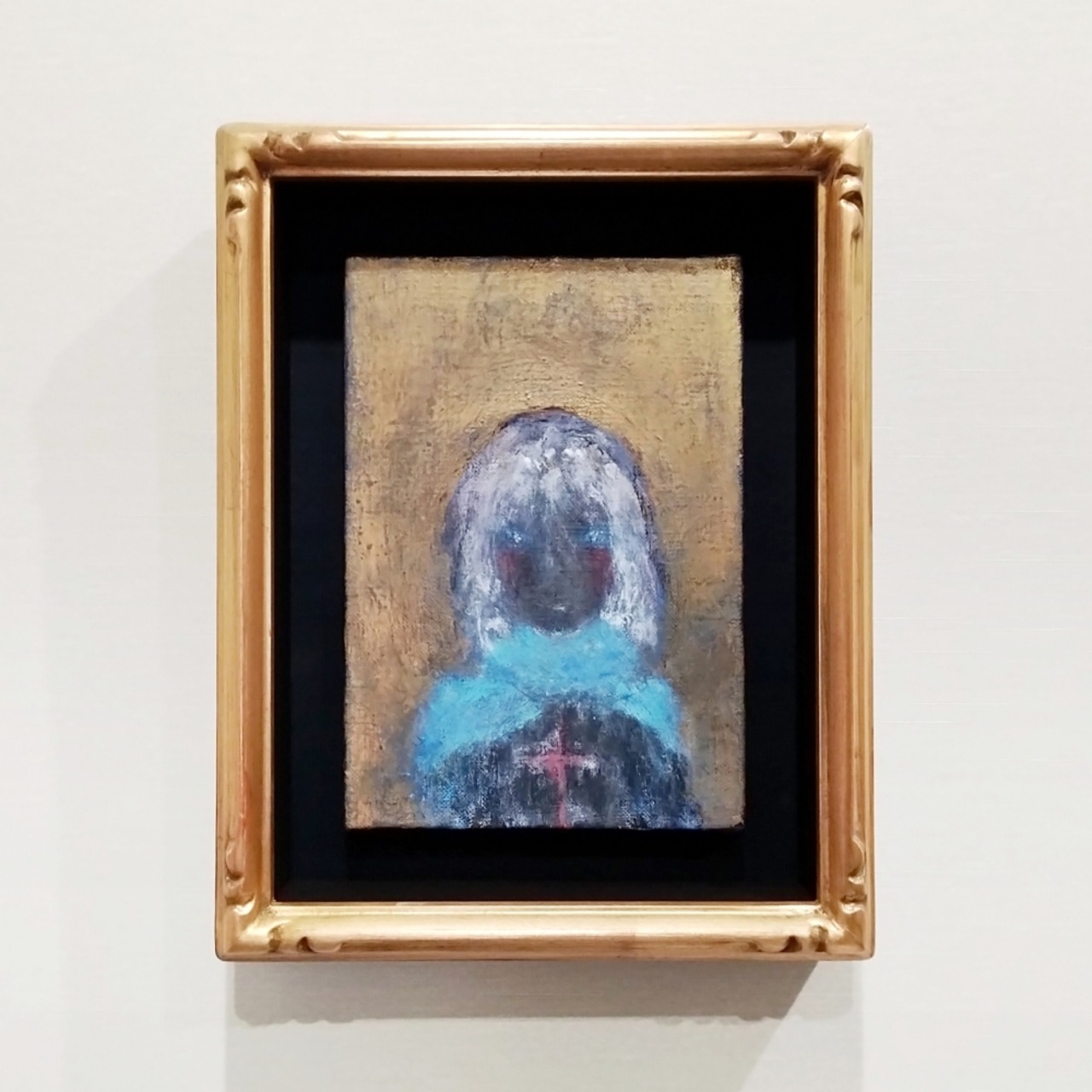 古典的宗教画がイメージの土台にあり、それは1人の聖人が描かれた小さな板絵である。