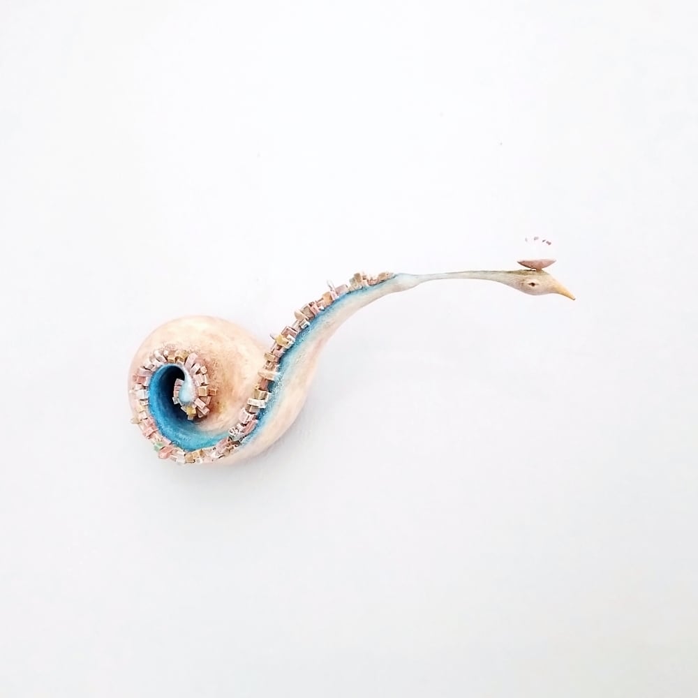 技法:石粉粘土・木材・真鍮・ドライフラワー・油彩
