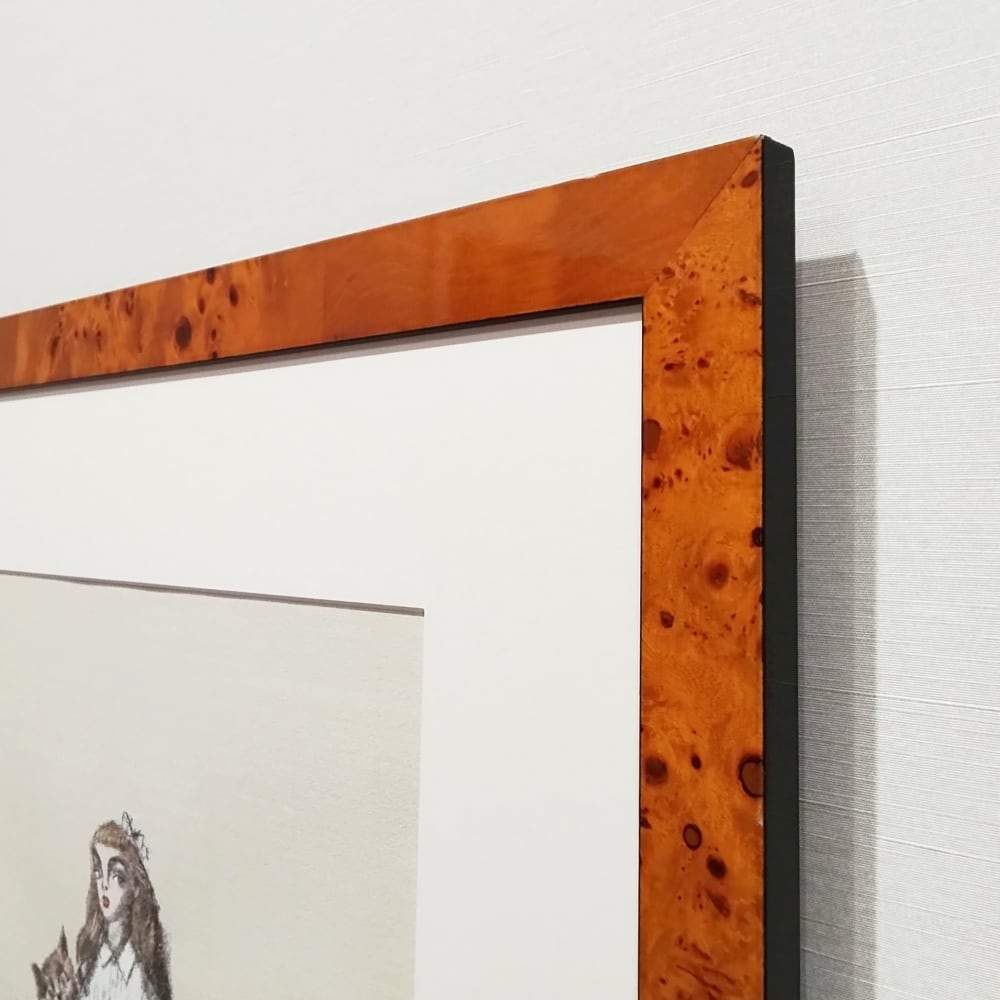 幅3cm程の表面がブラウン、側面がブラックの額に入っています。