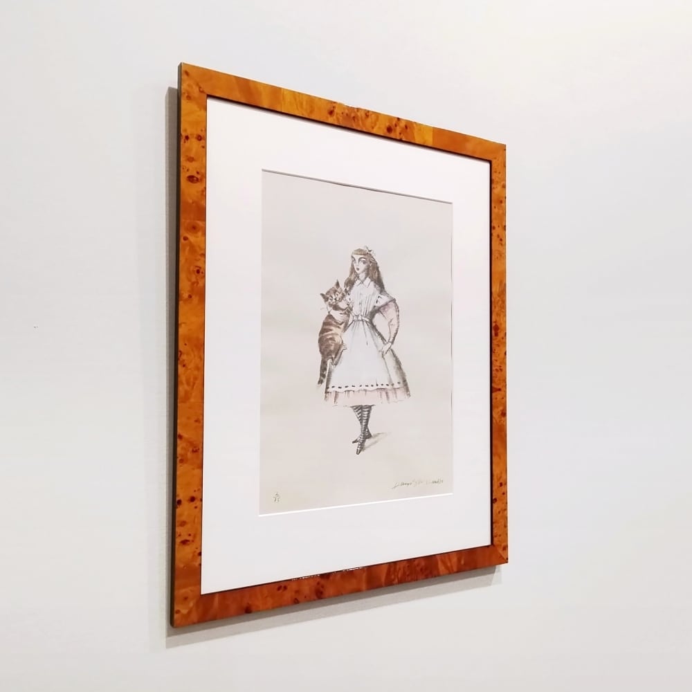 1974年にイタリアにて発表された挿画本『不思議の国のアリス』、続く『アリスの夢』、『鏡の国のアリス』など、様々な技法や表現によって生涯追い求めた題材でした。