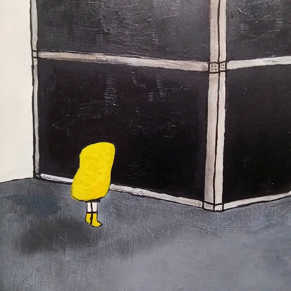 当時、新聞整理記者として働きながら新聞に挿絵を描いていたが、ある時合板を支持体にして大きな作品を描いてみたところ、イメージが次々を溢れ出てきたのが制作のきっかけ、と言う。