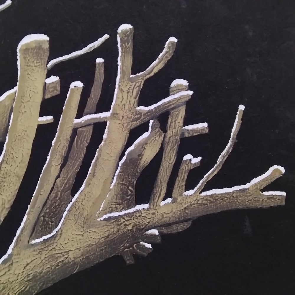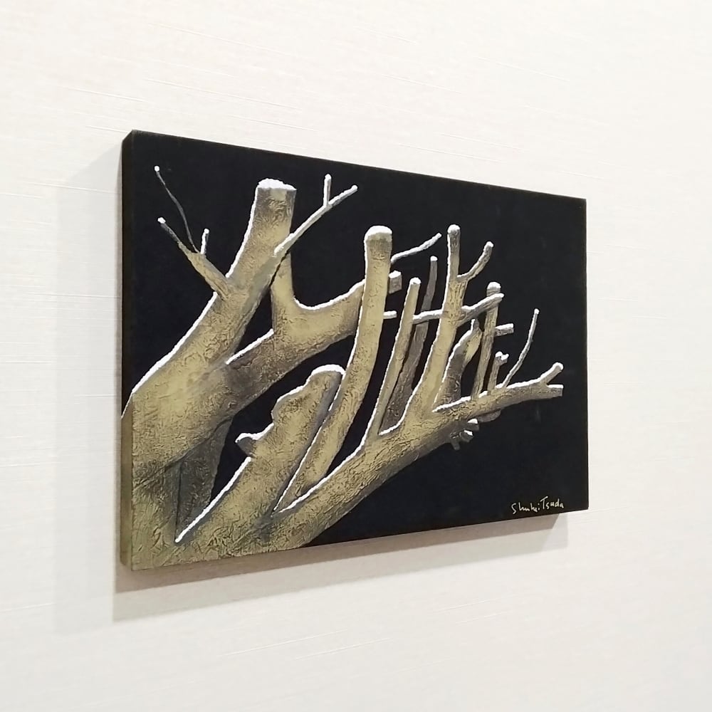 樹木の持つ生命力や、霊的な力を宿すかのような神秘性が、黒を基調とした明快なコントラストによって表現されています。