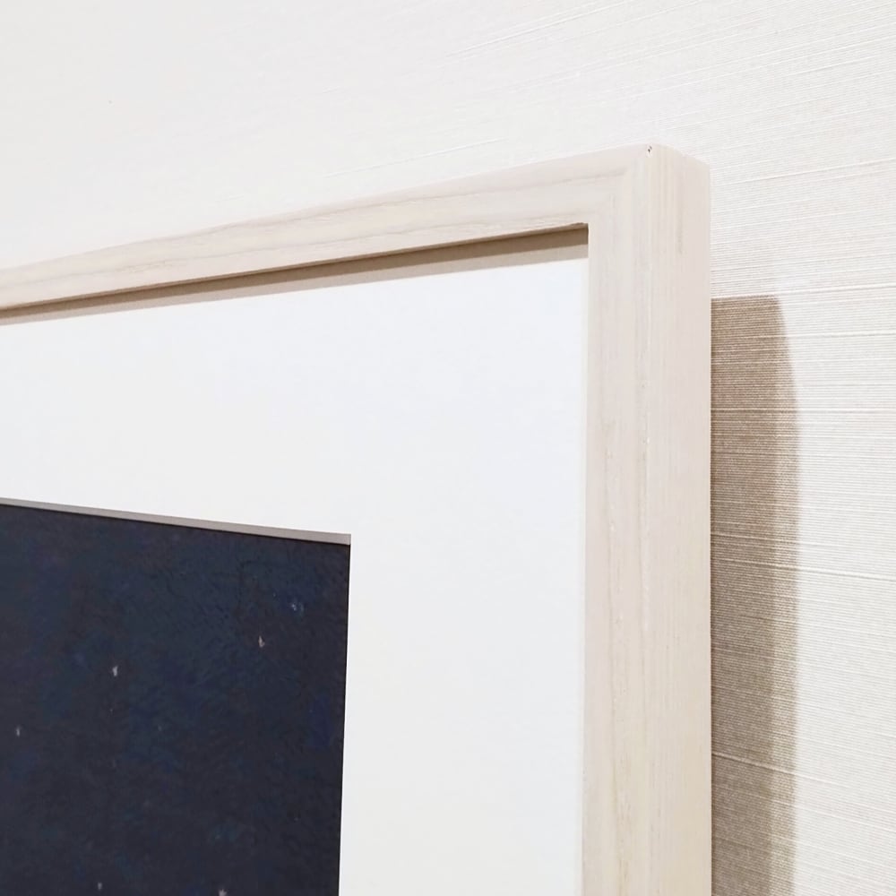 幅1.2cmのナチュラルな木製額に入っています。