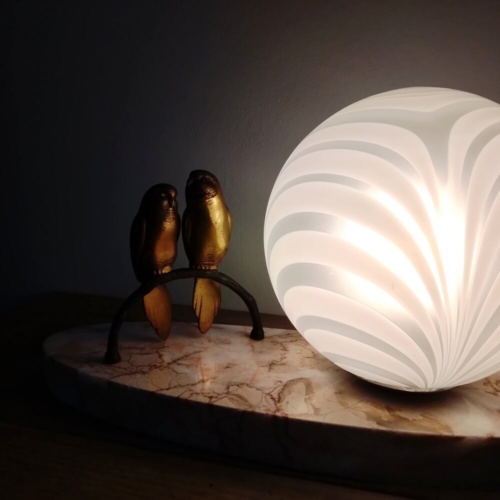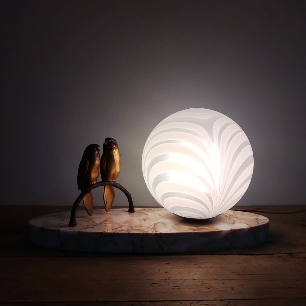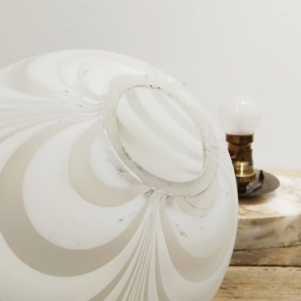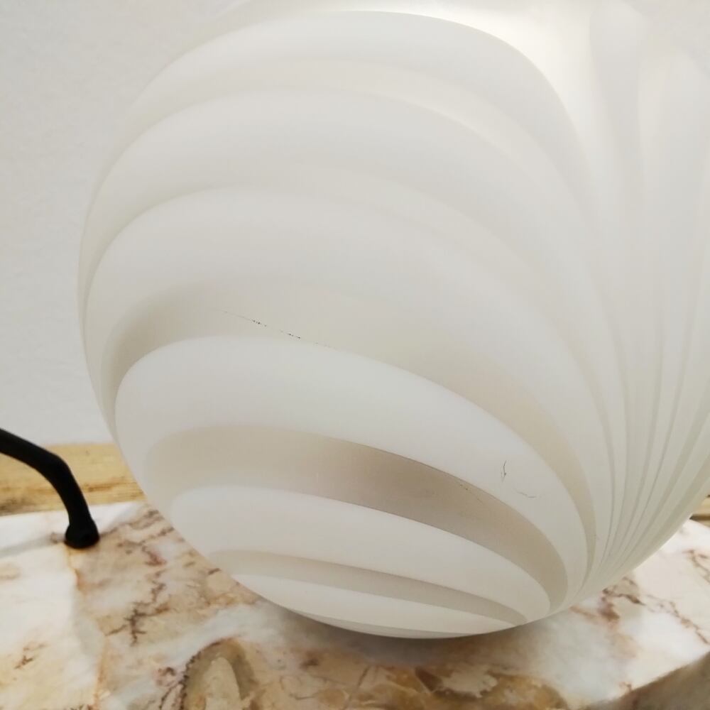 曲線的な模様の浮かぶ球体のガラスシェード。