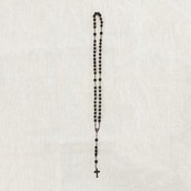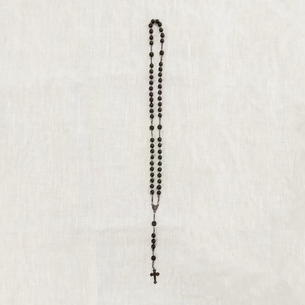 シックなブラックビーズにメタル製の十字架が良く映えるデザイン。