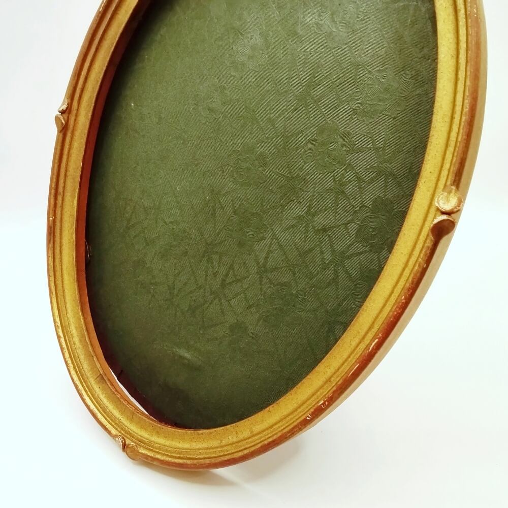 アンティークのオーバルフレームは金属製が多く残る中、こちらは木に塗装を施したもの。