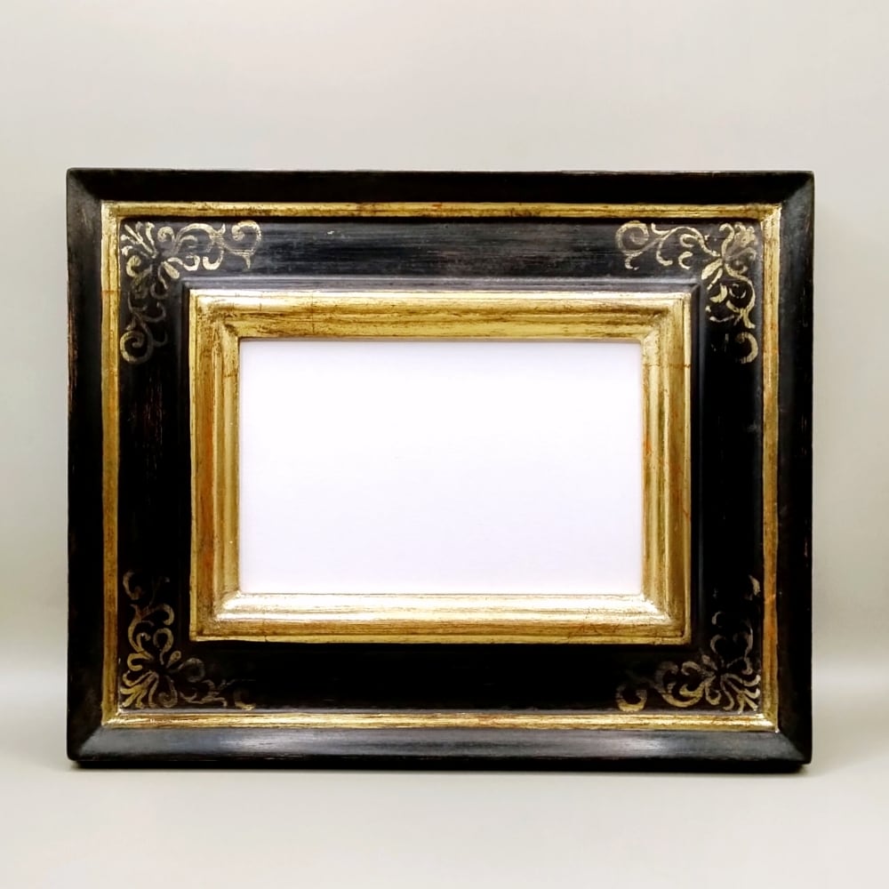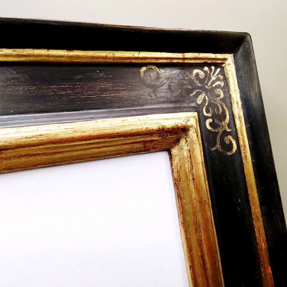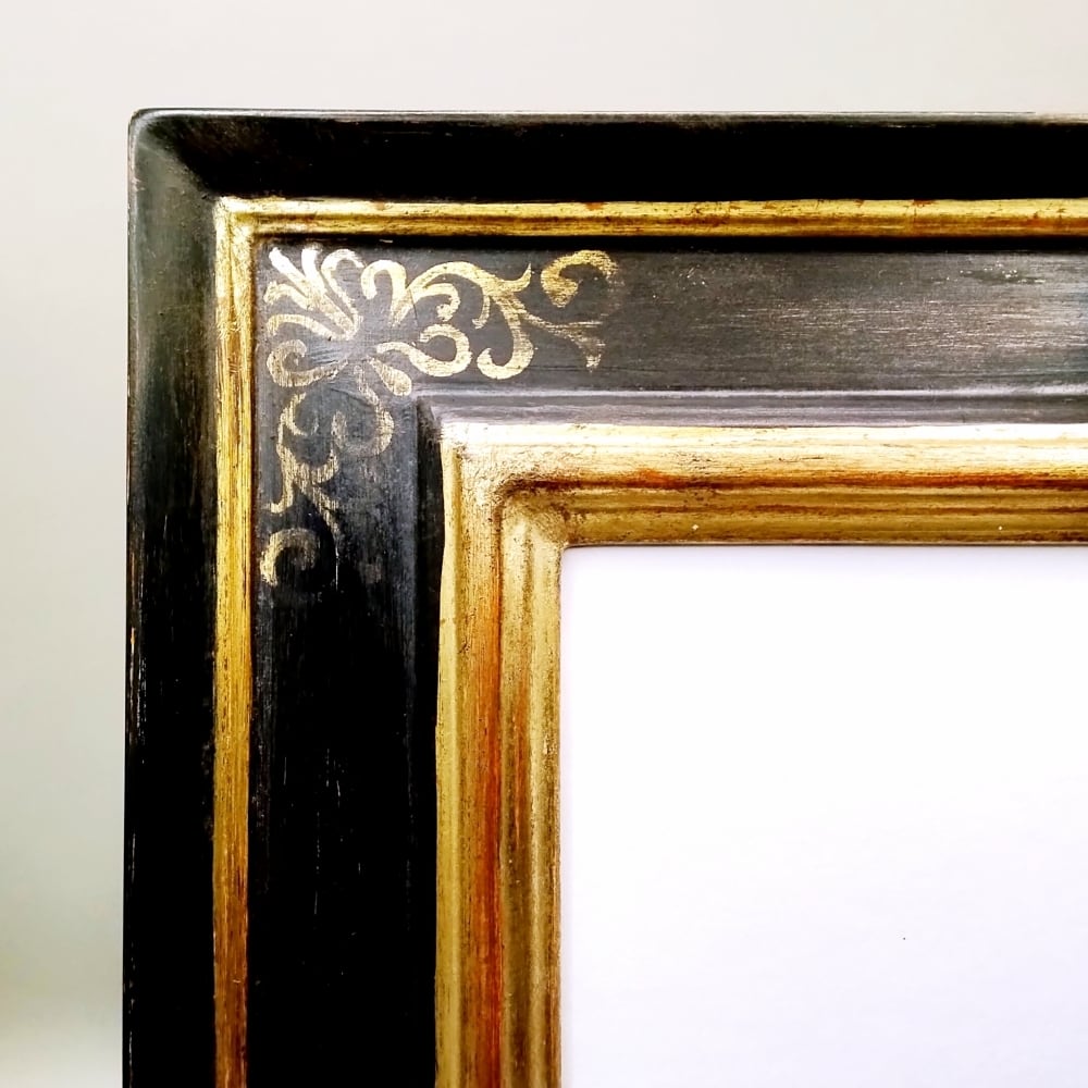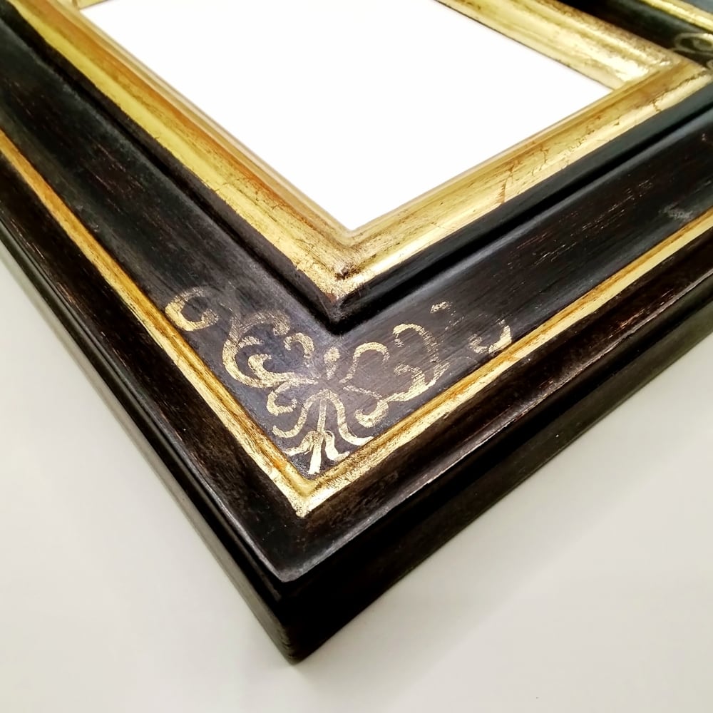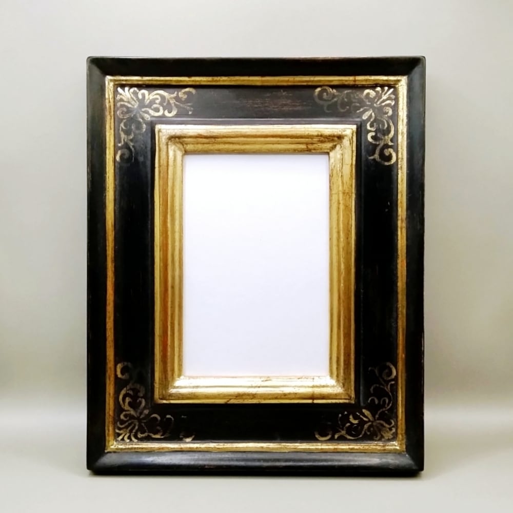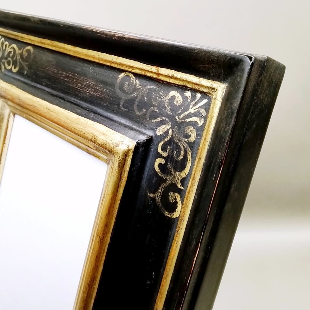 ブラックとゴールドのシックな調和が美しい、一点もののフレームです。