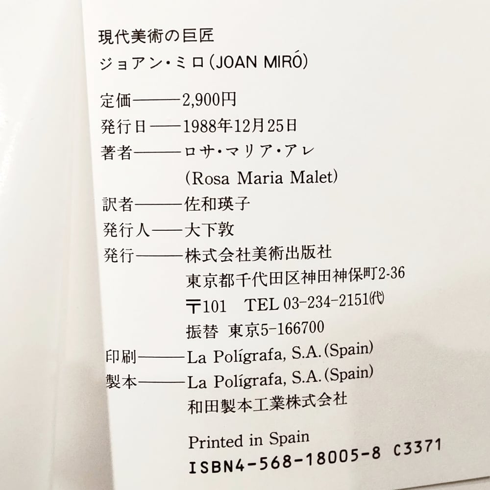 本書は、世界の芸術家たちを紹介する美術書シリーズ「現代美術の巨匠」(美術出版社)の内、ミロを特集した一冊です。