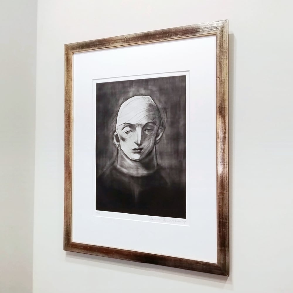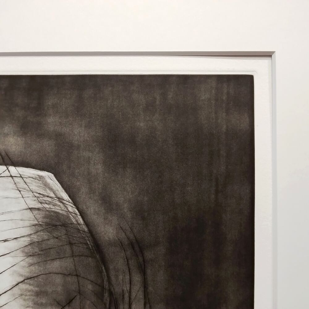 メゾチントによる深い色面と、ドライポイントのダイナミックな線刻の対比が魅せる豊かな表情にもご注目ください。