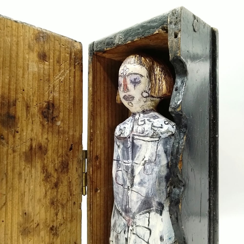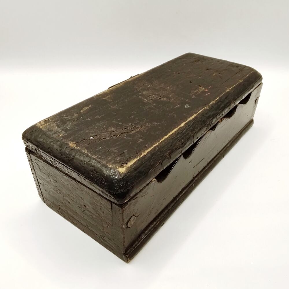 技法:木・クラフト染料・油性ペンキ・ハンダゴテの熱・古い木箱