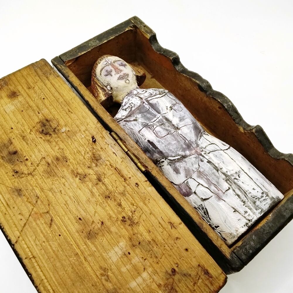 蚤の市で見つけた古い木箱からイメージを膨らませて誕生した作品。