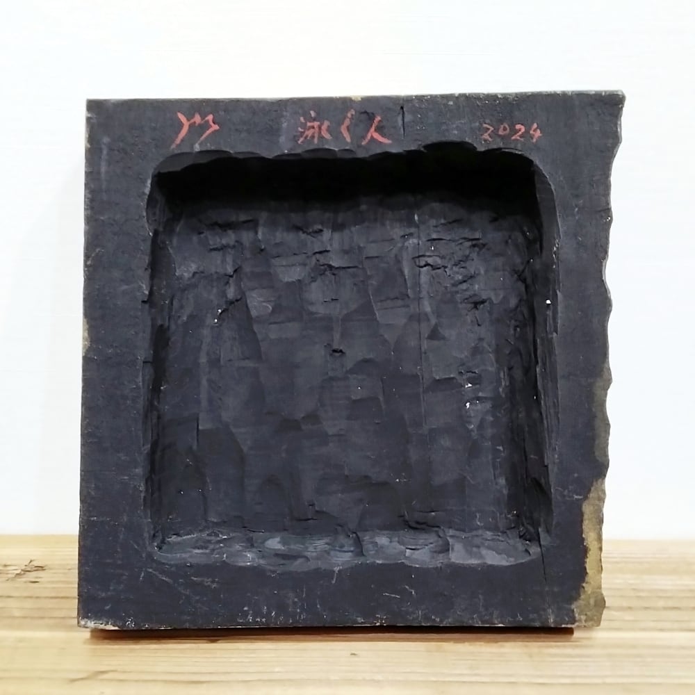 削げや亀裂といった木材の表情をそのまま活かした表現には、抗えない自然の力を受け入れ、共に生きていくという作家の創作テーマが映し出されています。