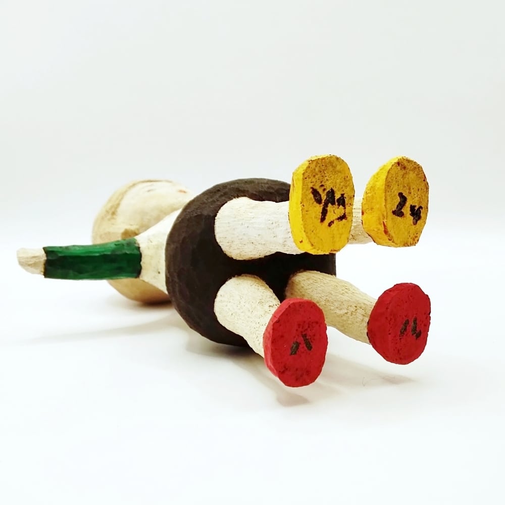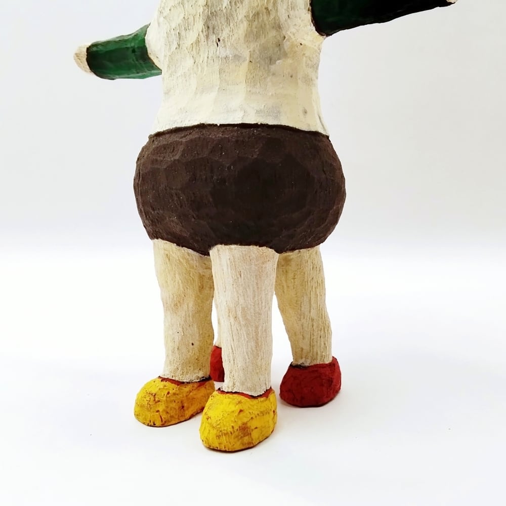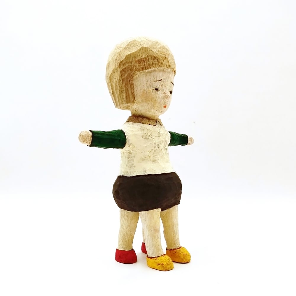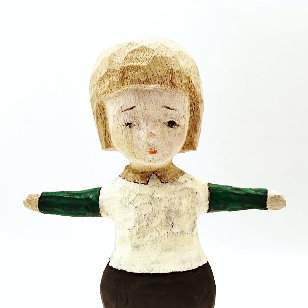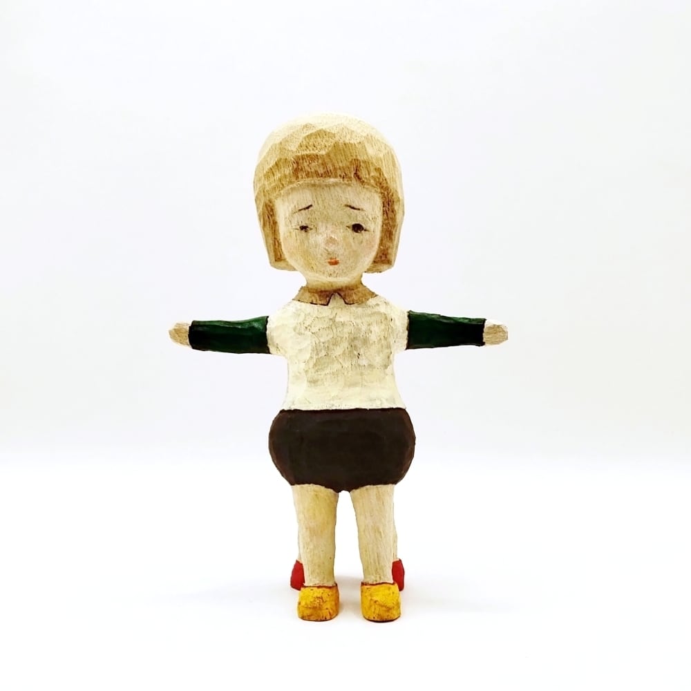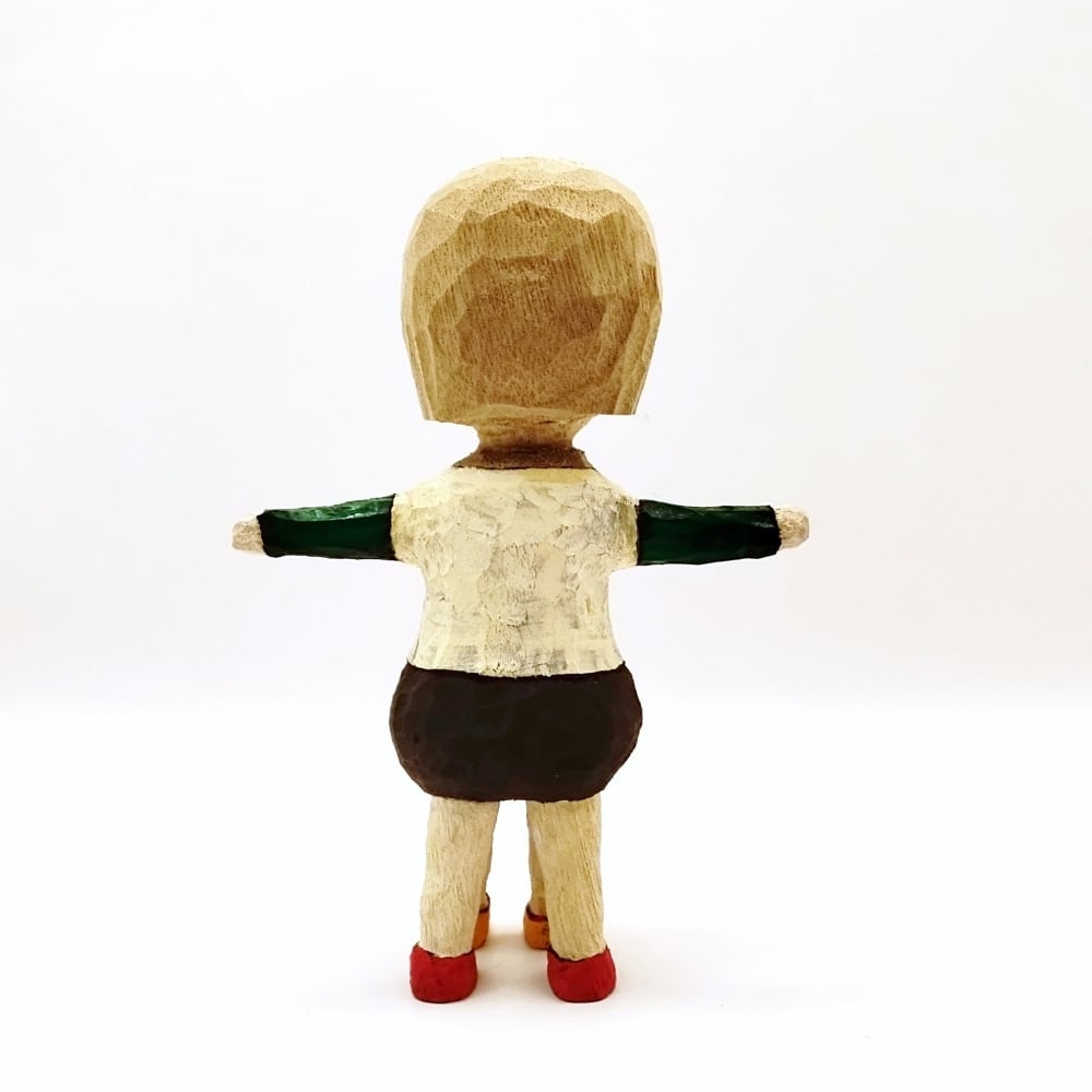 木を彫り進めて生まれた、愛らしさと歪さが溶け合う一作。