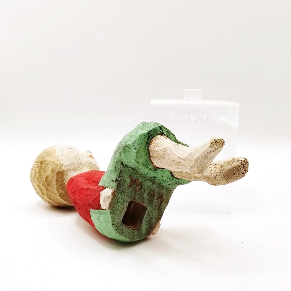 透明の台座は、ガラス作家・小川真由子が手掛けたパート・ド・ヴェール製で、木彫と台座は取り外し可能です。