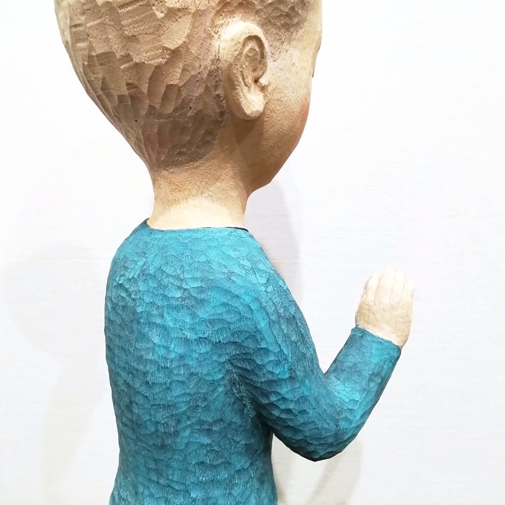 丸尾康弘が生み出す彫刻は、あたたかく、遊び心があり、それでいてどこかに憂いや影を帯びる。