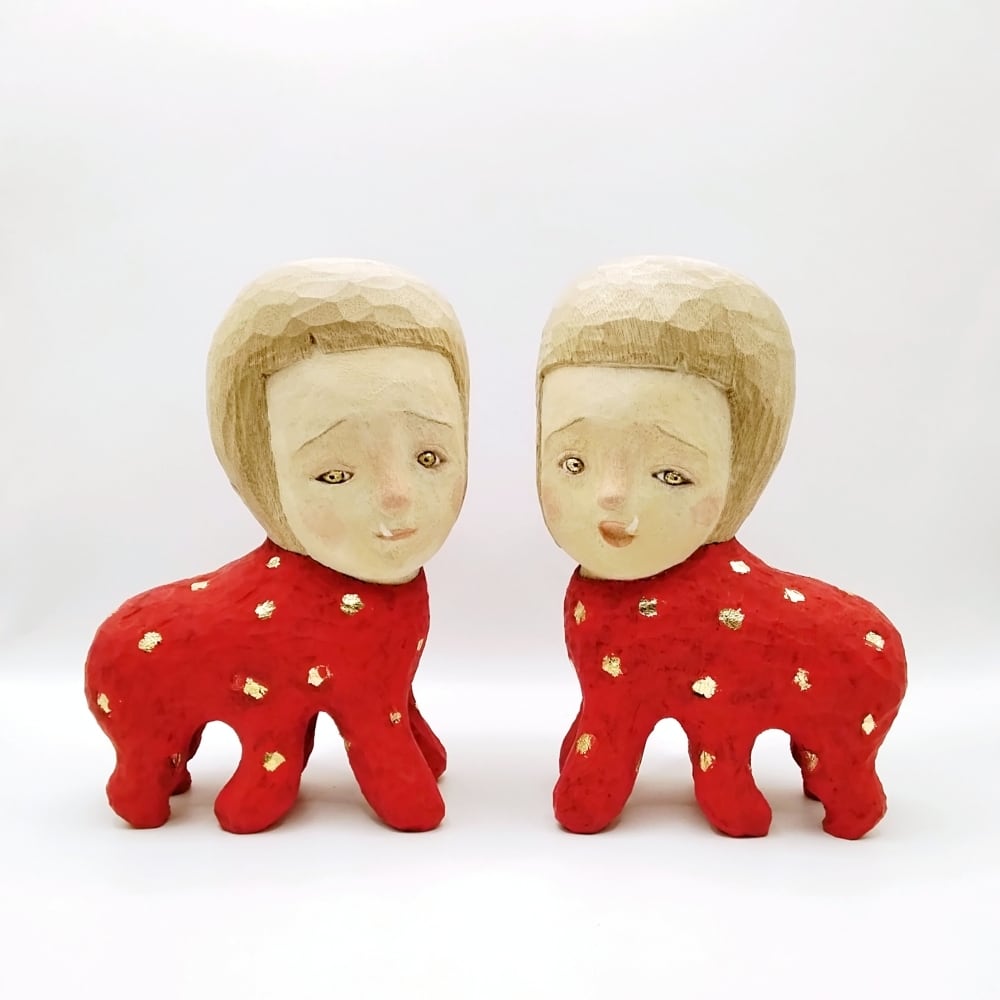 丸尾康弘が生み出す彫刻は、あたたかく、遊び心があり、それでいてどこかに憂いや影を帯びる。