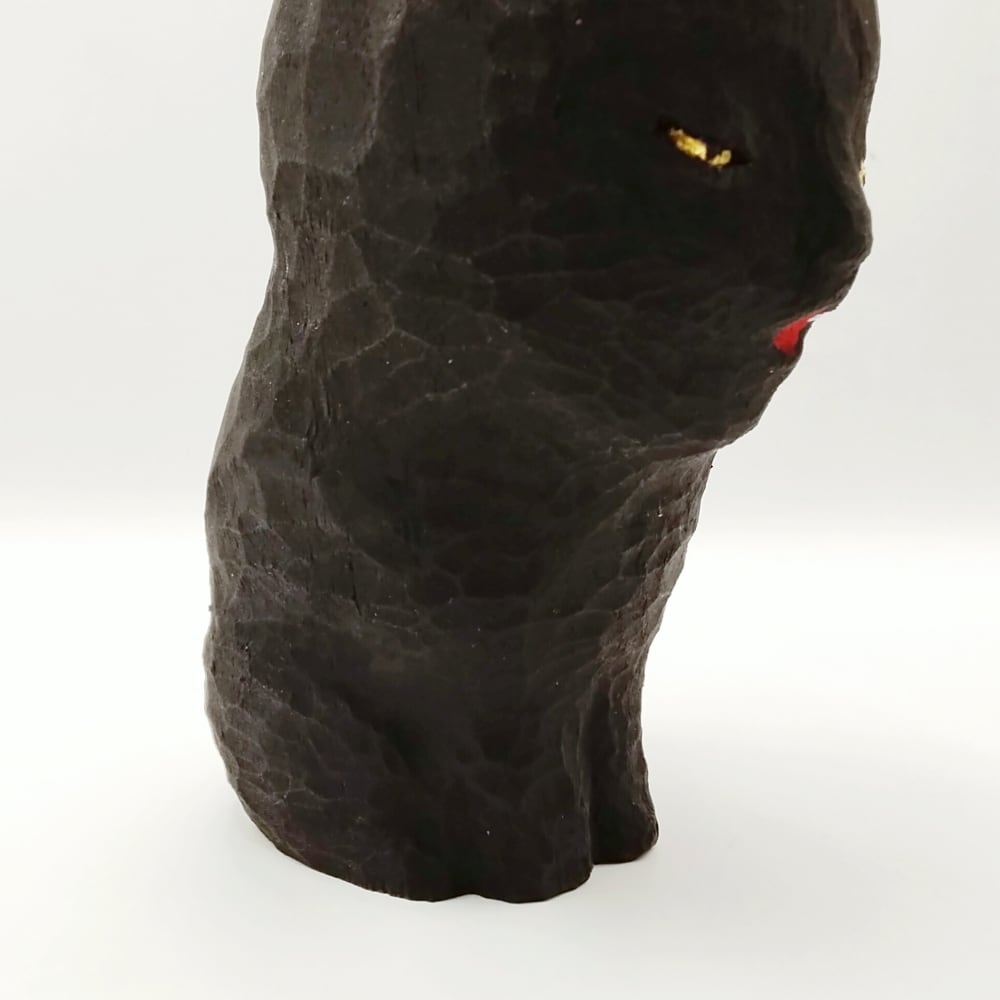 本来であれば黒猫が持ち合わせていない異形の要素は、険しい形相をしながらも私たちを救済し、導いてくれるという「不動明王」をイメージソースとしたものです。