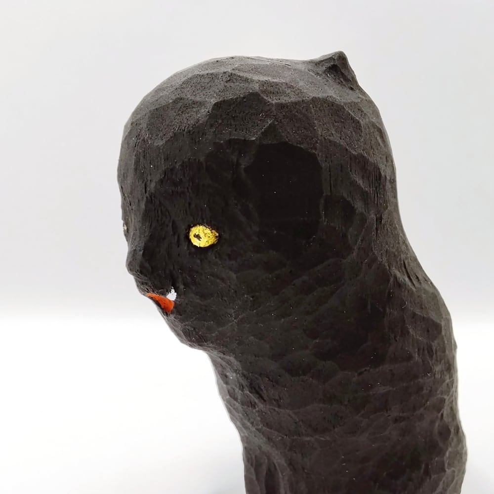 黄金色の眼差しが、愛らしくもどこか超常的な存在を思わせます。