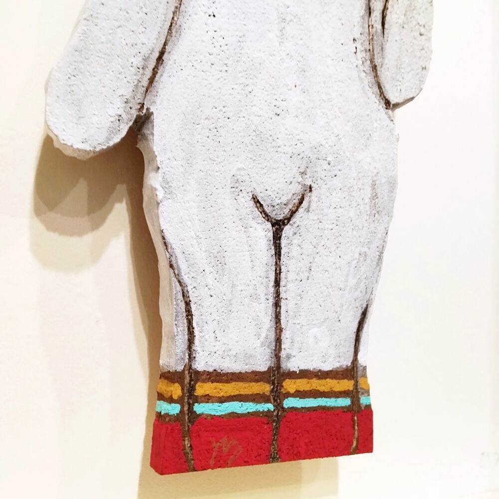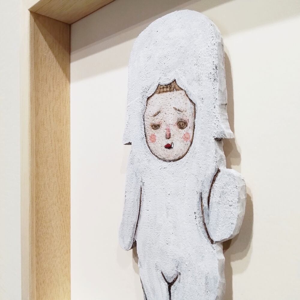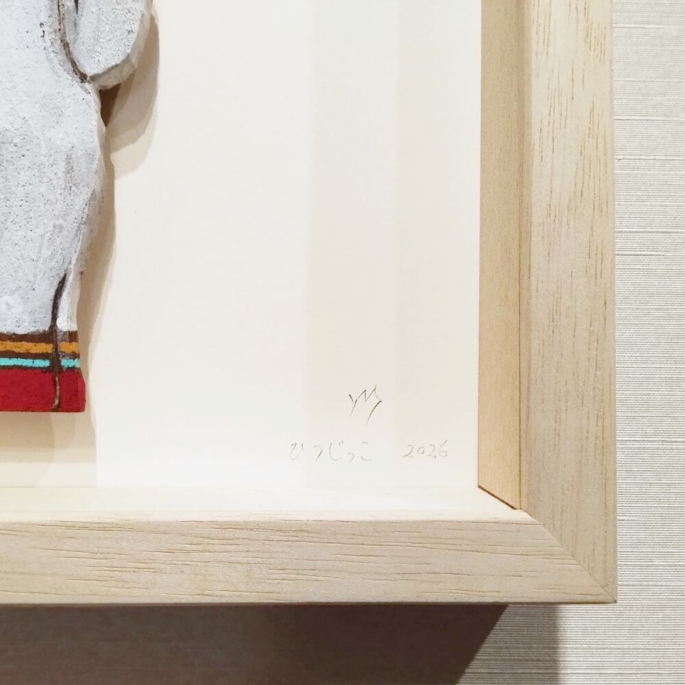 本シリーズは、木を彫り進めていき最終的に切り落とされたこの下絵部分に彩色をした作品です。
