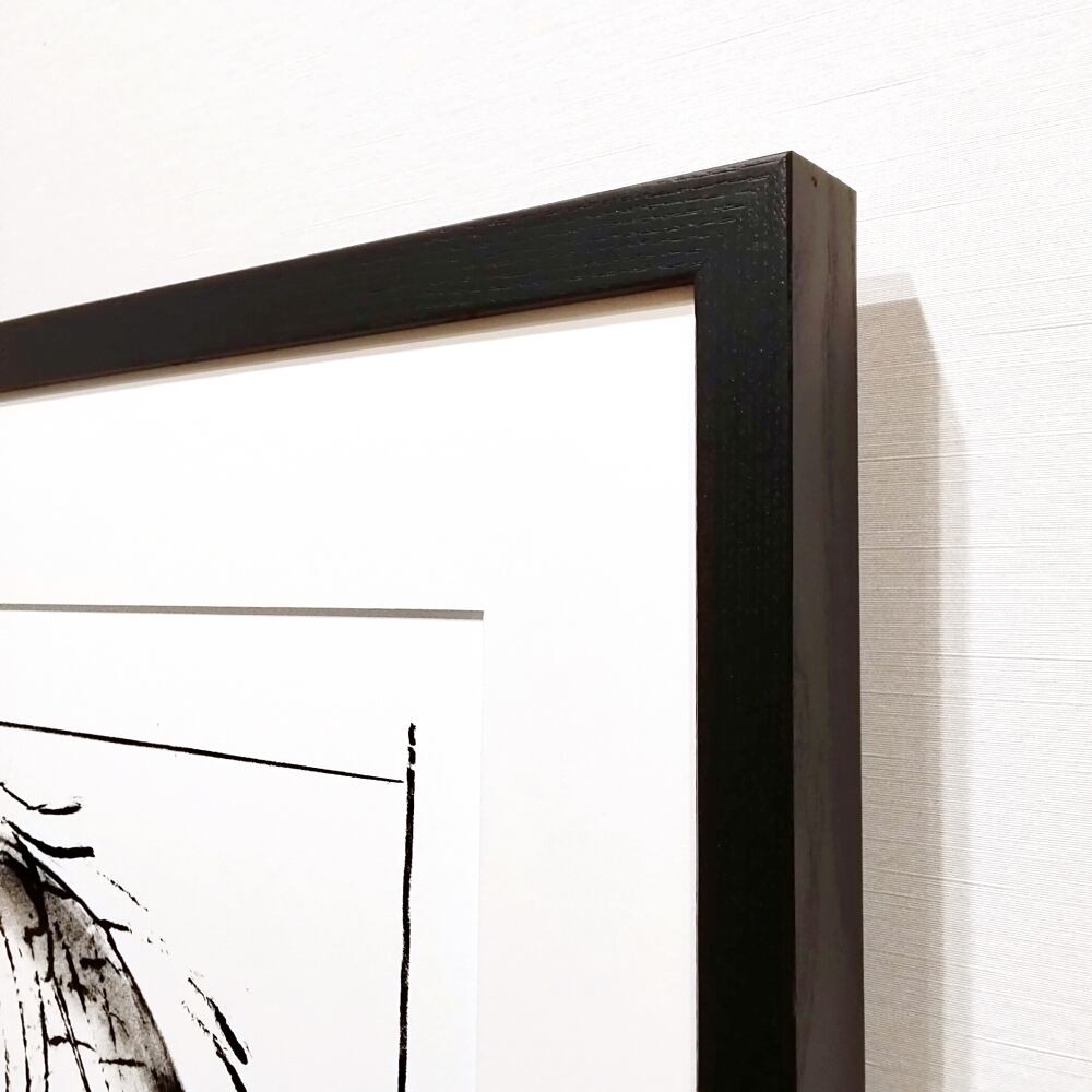 シンプルな黒の木製額を合わせました。