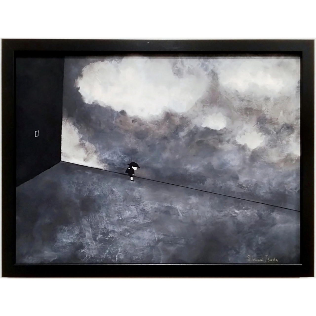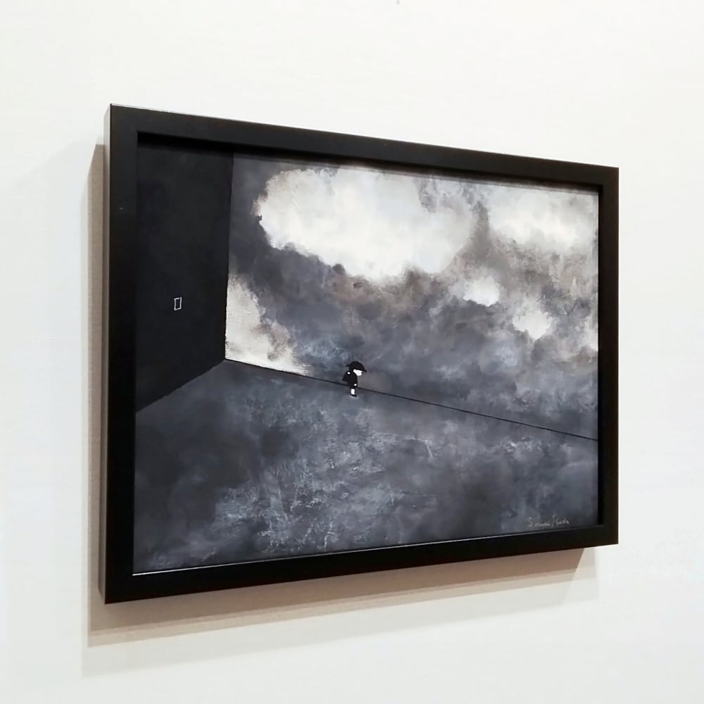 黒を基調に、子どもと世界の融合と対比を描く。